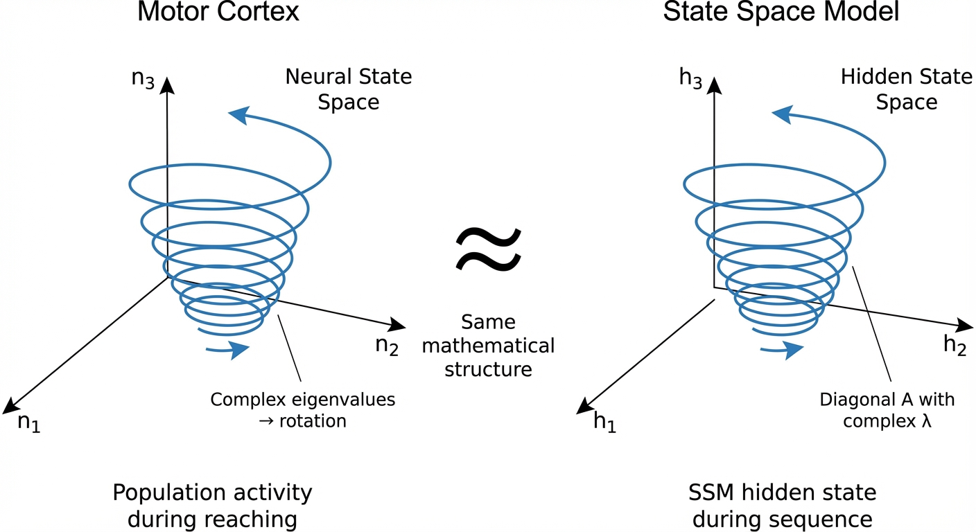 The meta-insight: certain mathematical structures are universally optimal for recurrent computation under stability constraints. Evolution discovered this through natural selection; ML theory derived it from gradient flow analysis. Neither field fully exploited the connection until recently.