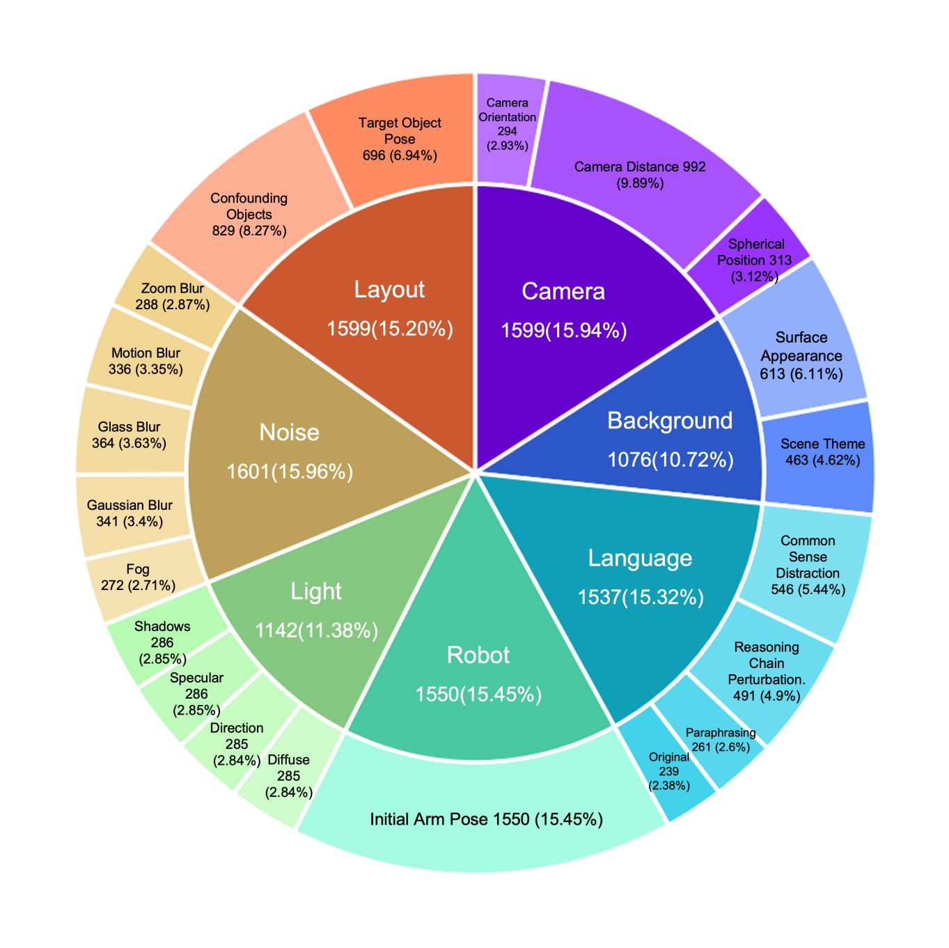 - Object Layout (2 sub-dims): Distractor objects, target pose changes
