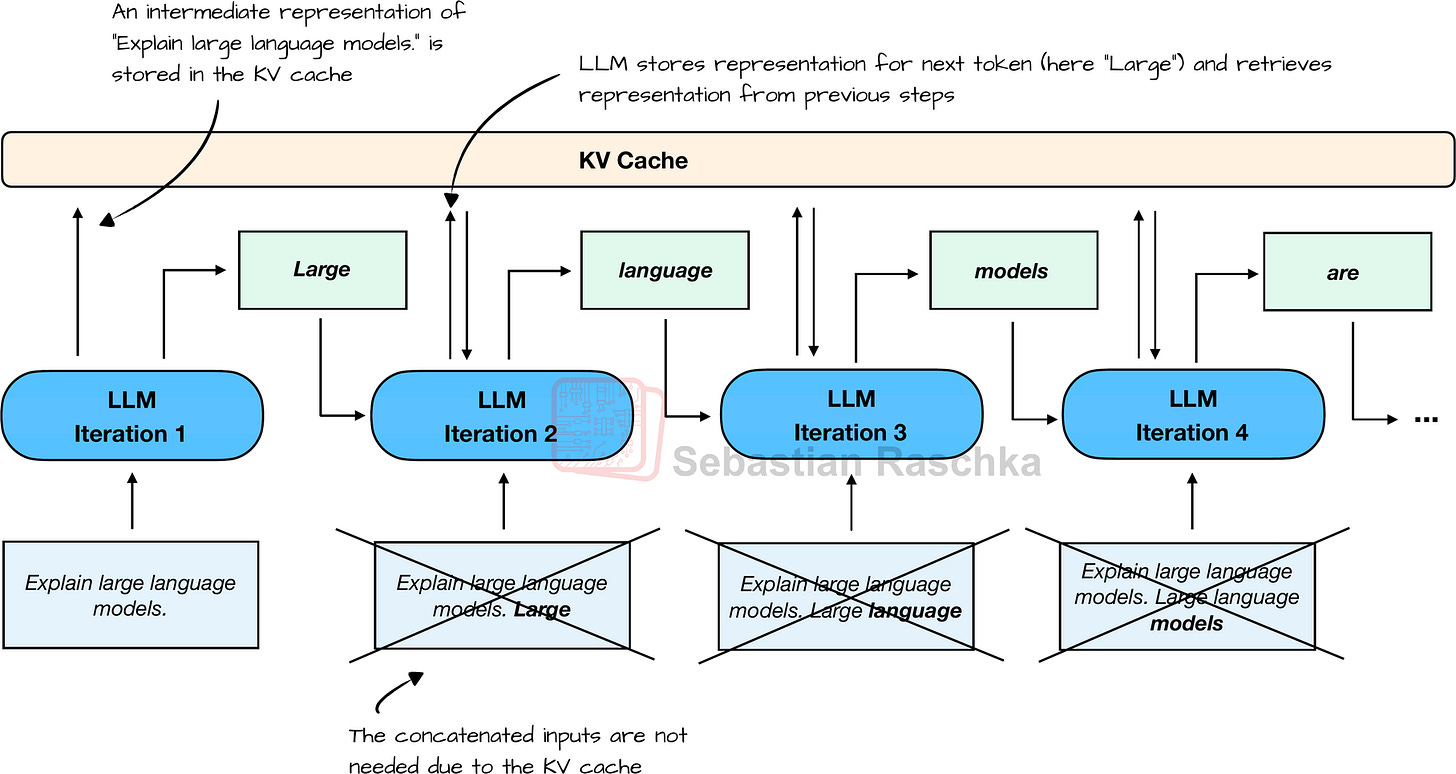 - Caption: Figure 18: The typical one-token-at-a-time text-generation pipeline of an LLM with KV cache.