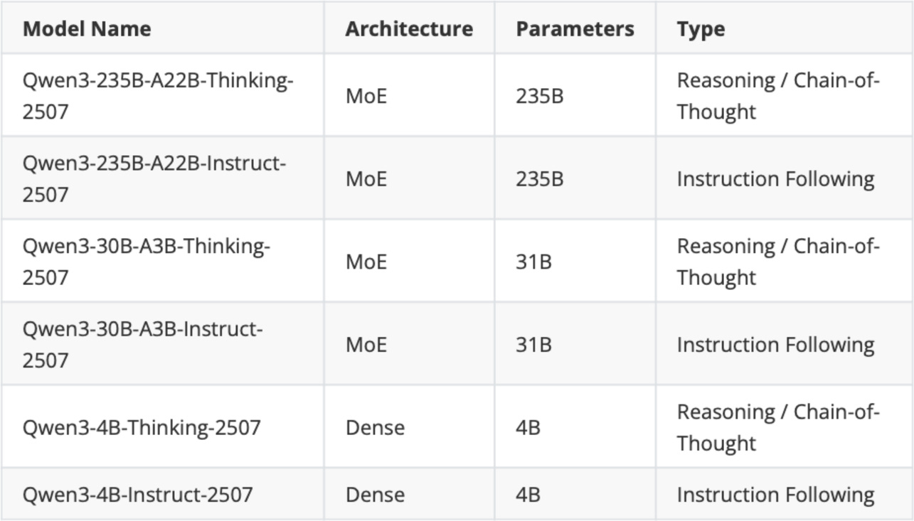Figure 3: The updated Qwen3 models that were released on July 25.