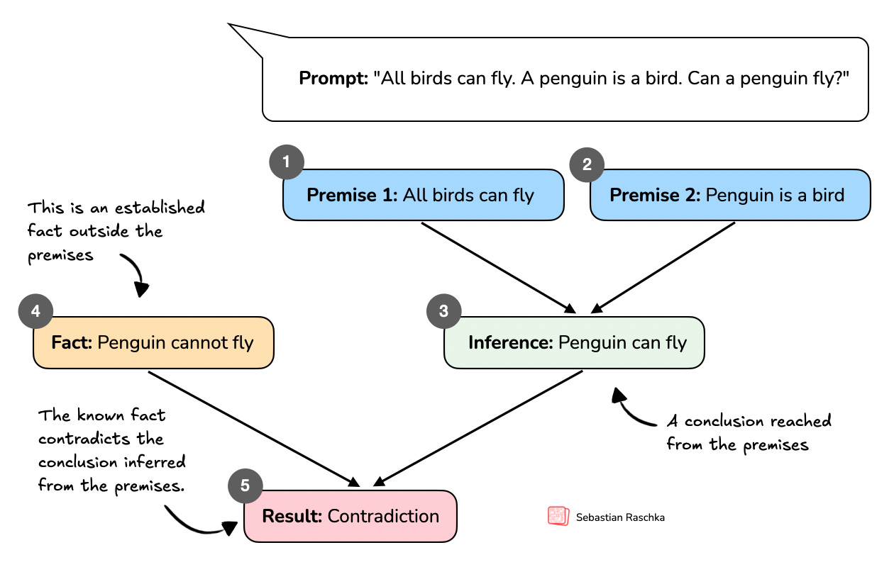 So, before we transition to the coding portions of this book in the upcoming chapters, I want to kick off this book with this section that defines reasoning in the context of LLMs, and how it relates to pattern matching and logical reasoning. This will lay the groundwork for further discussions on how LLMs are currently’ built, how they handle reasoning tasks, and what they are good and not so good at.