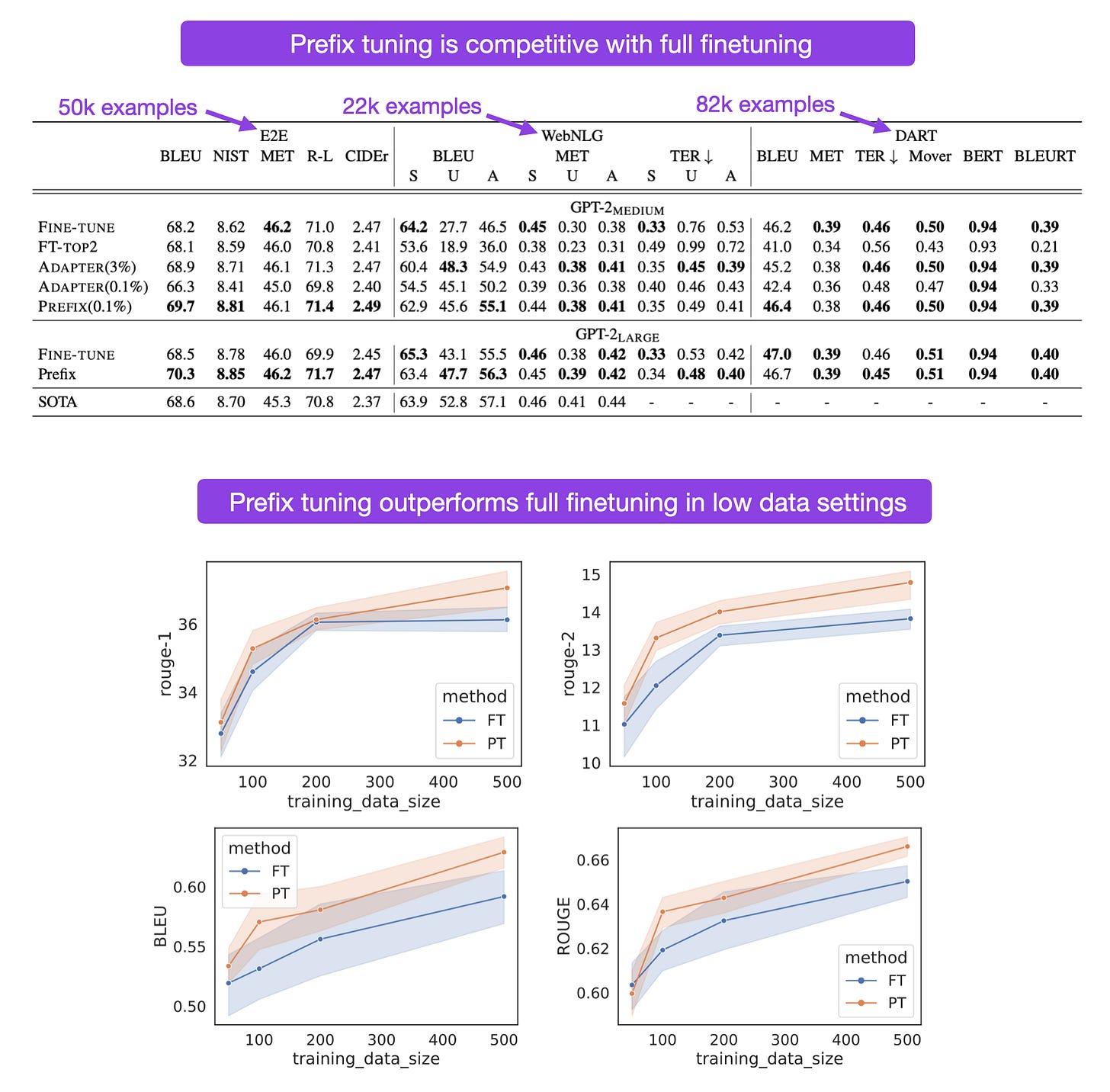 Annotated figures from the Prefix Tuning paper by Li and Liang.